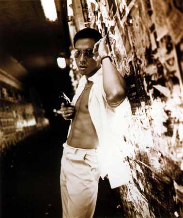 他裸著上身在那邊擺POSE 要不就只穿一件皮衣~要命的迷人啊!