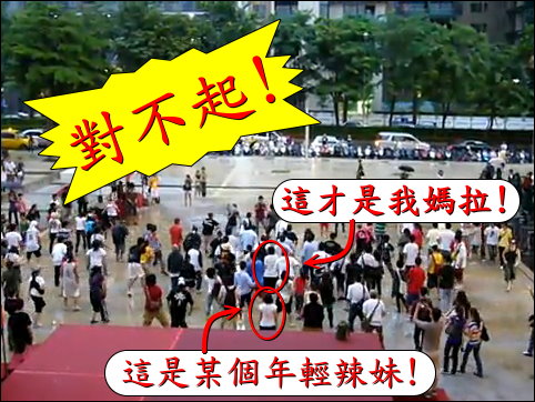 菊媽是中間後面穿白衣服(MJ的圖唷)黑長褲白球鞋短頭毛那位比我還瘦的太太XD