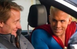 萊恩在《紙人》中,飾演一個男主角幻想的超級英雄朋友(金髮很違和)