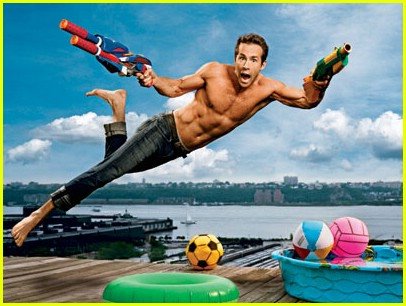 萊恩雷諾斯為雜誌拍的一系列水槍照XD