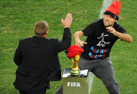鬧場達人吉米衝進場,似乎想要替大力神杯戴帽子XD
