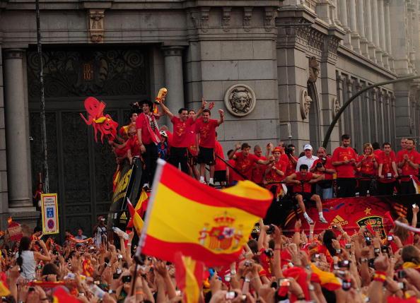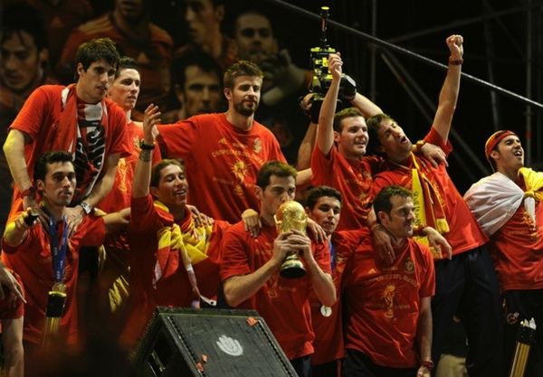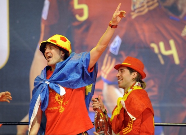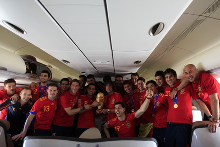 西班牙隊勝利返國~先在機上慶祝了一番!